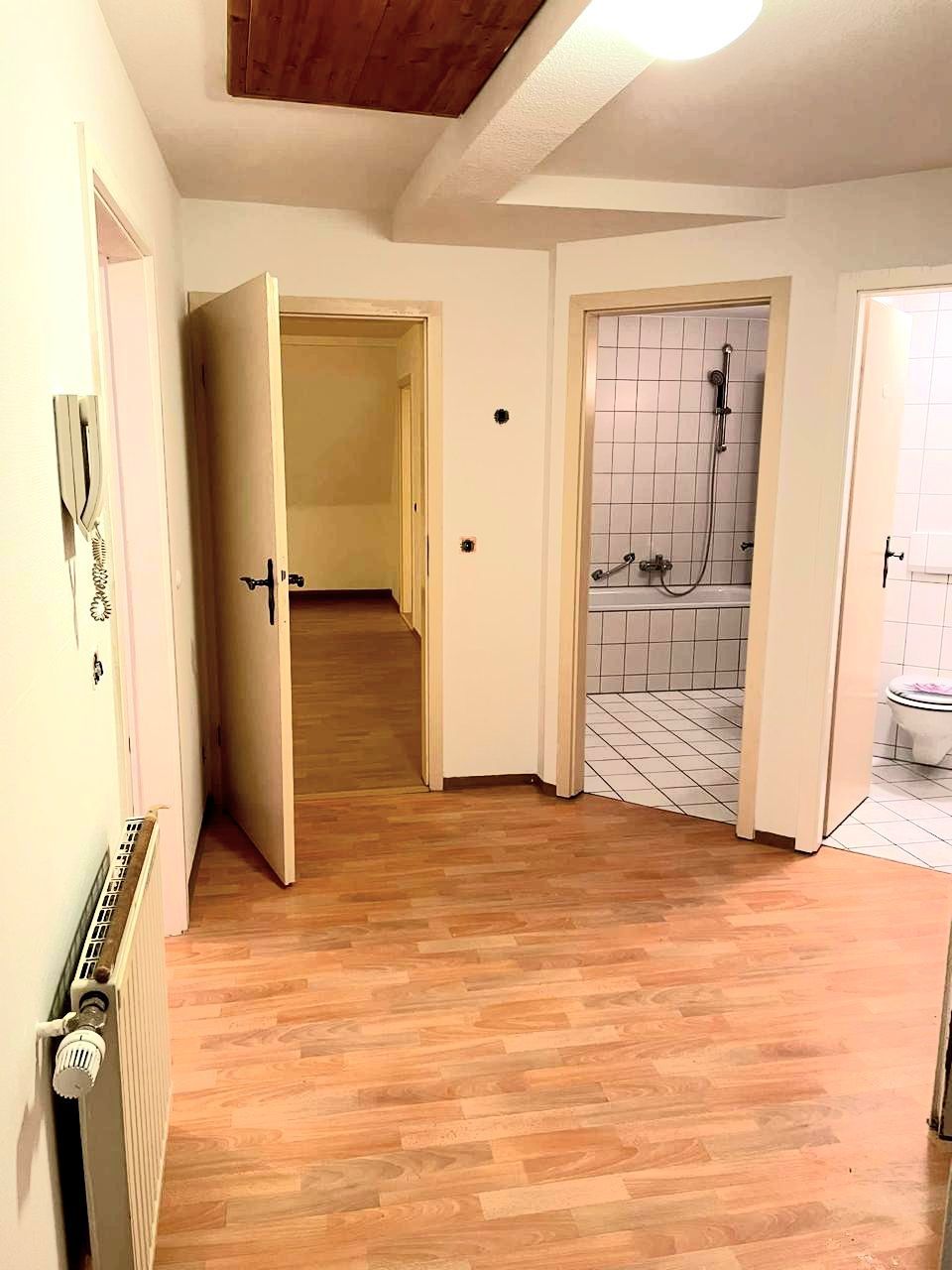 In 2022, parts of the roof were replaced, and in 2023, the municipal utility company installed a modern gas boiler as part of a district heating contract. A satellite system is available. Adequate public parking is available along the street; no parking spaces or garages are assigned to the property itself.