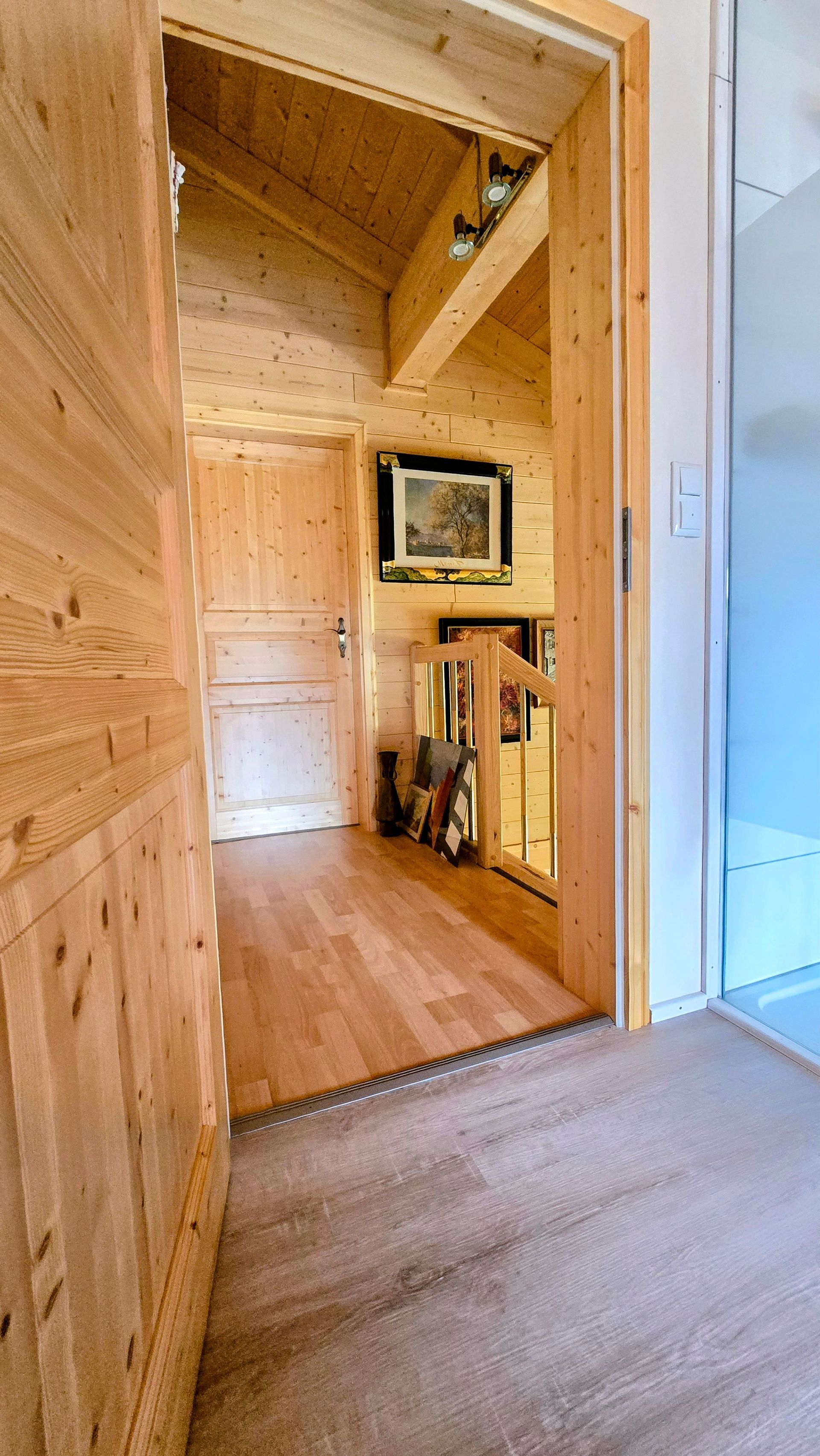- Ground floor bedroom lined with Swiss pine wood – for a restful sleep