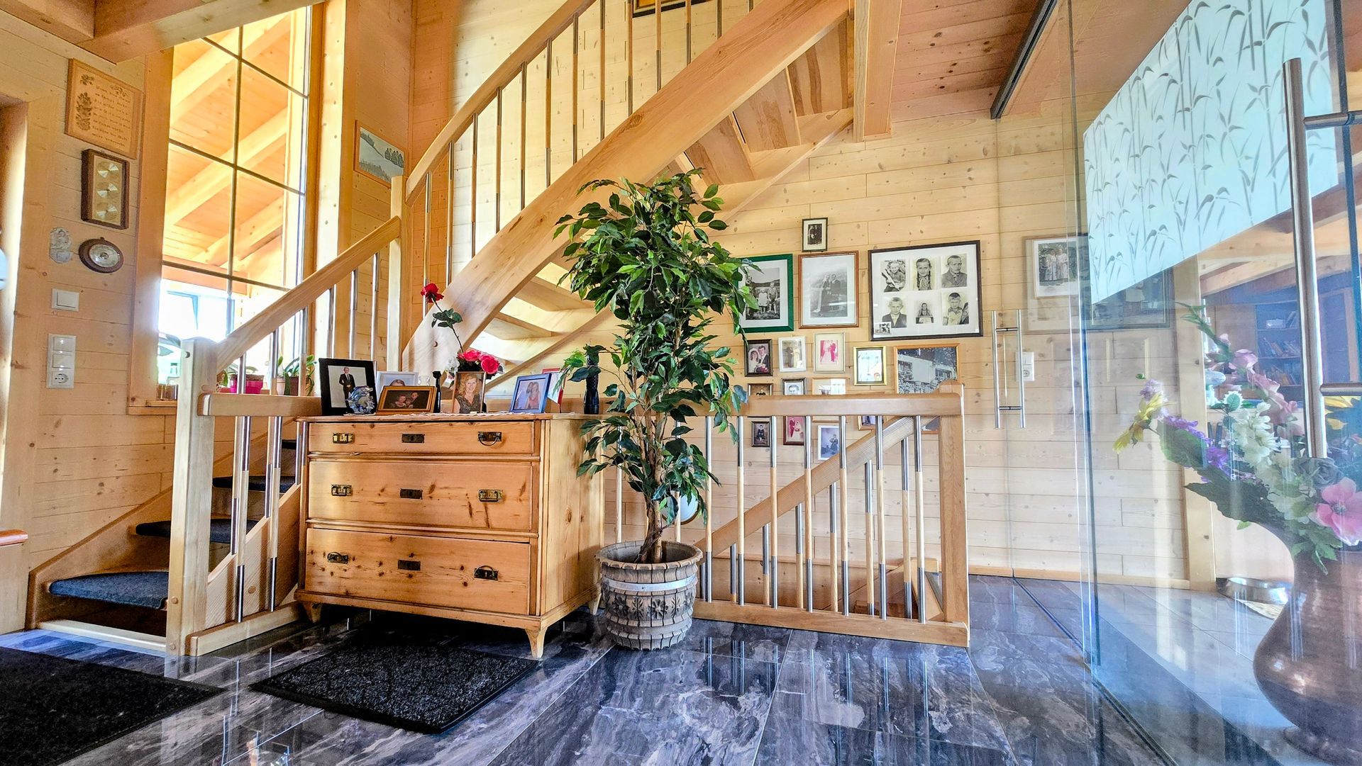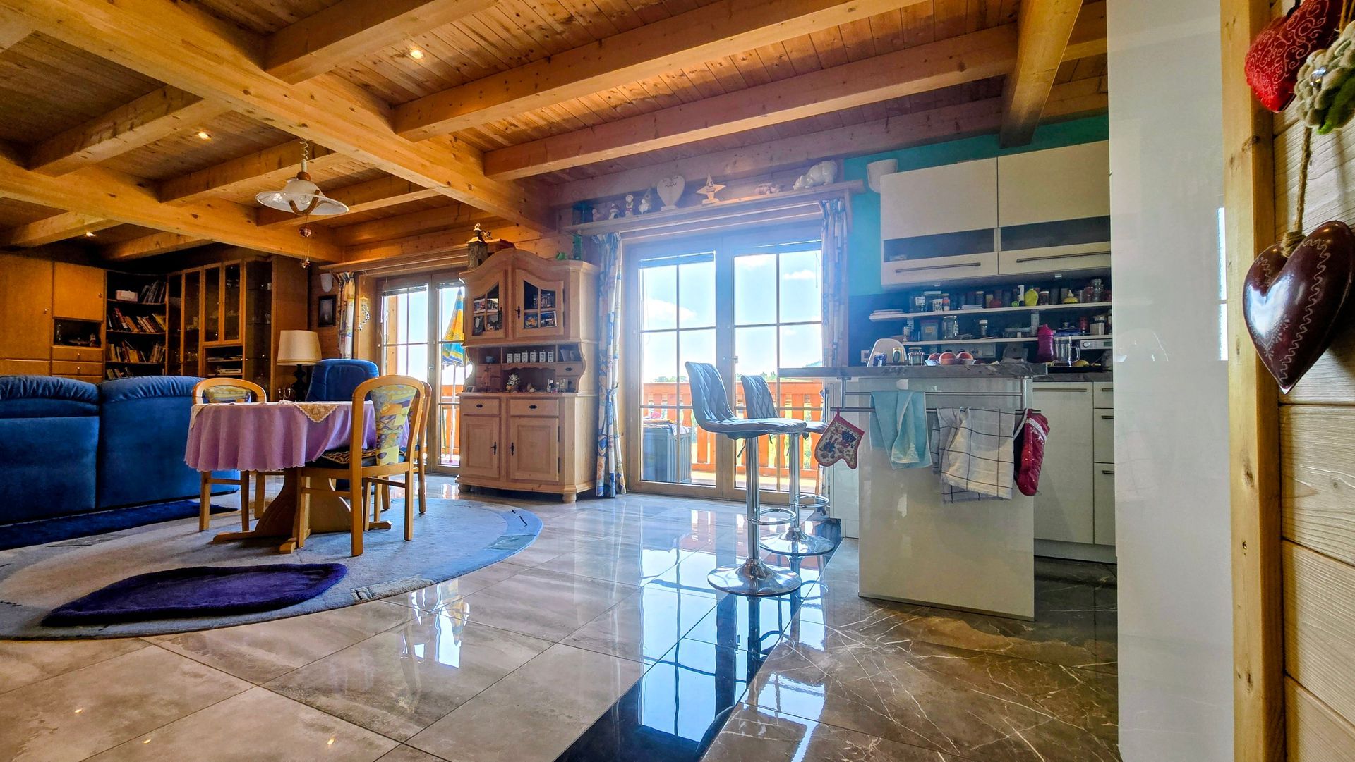 Umirujuća atmosfera dočekuje vas čim uđete. Otvoreni dnevni boravak u prizemlju, opremljen tradicionalnom peći na drva Lohberger, savršeno spaja kuhanje, blagovanje i život – mjesto gdje se svakodnevni život osjeća jednako kao kod kuće kao i svečane večeri s obitelji. Prozori od poda do stropa omogućuju svjetlosti i krajoliku da teku u kuću; grijani zimski vrt i tri balkona stvaraju vezu s prirodom u svako godišnje doba.