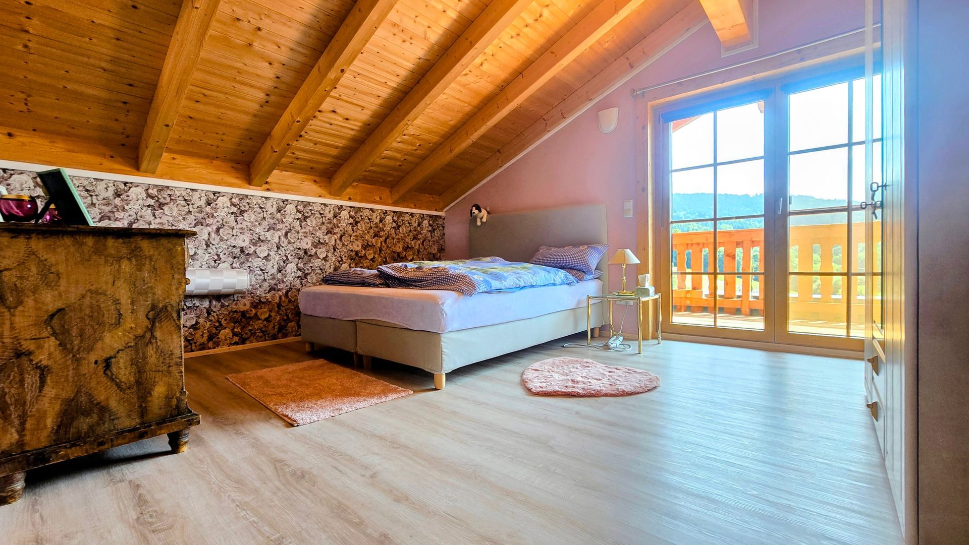 - Spavaća soba u prizemlju obložena švicarskim borovim drvom – za miran san